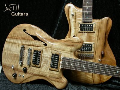 The semi-hollow center section is Alder, which is light weight and has great tone.